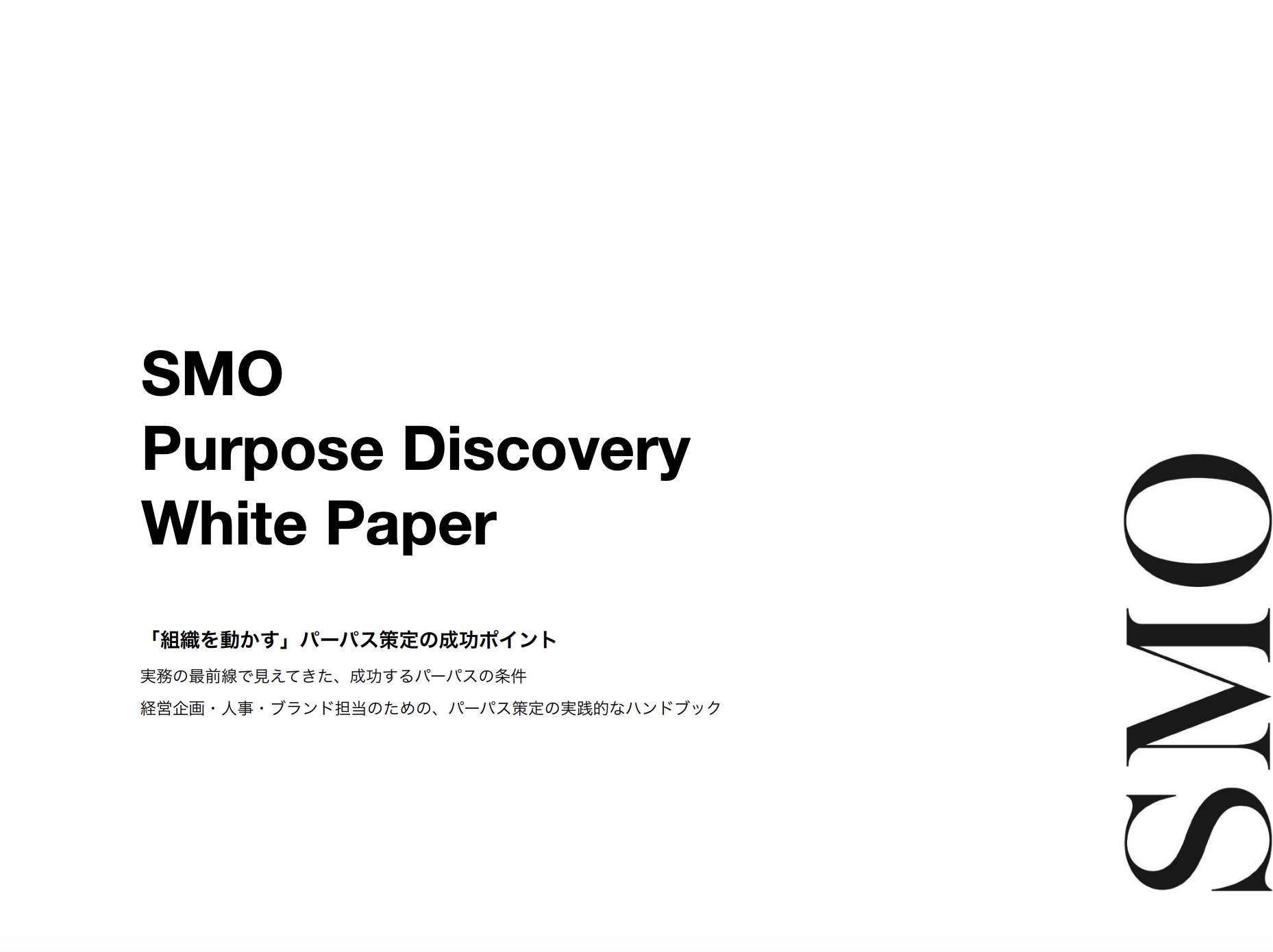 このホワイトペーパーでは、「組織を動かす」パーパスを策定するために欠かせない成功のポイントを、私たちSMOが実際の現場で培った豊富な経験とプロとしての知見をもとに、わかりやすくお伝えします。